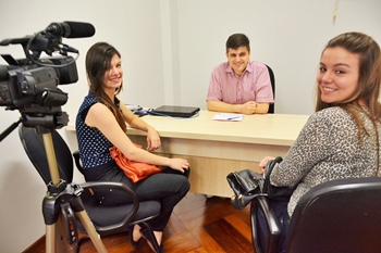 Isabelle Caroline Santin e Fernanda Kemp, alunas de Arquitetura e Urbanismo entrevistaram o vereador para disciplina do curso