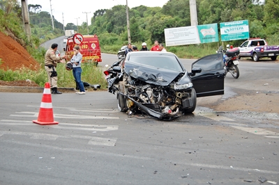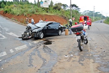 Nesta manhã de quarta-feira, um Cabo da Policial Militar de Caçador que se dirigia para o trabalho, amargou grandes prejuízos materiais e por muito pouco não perde a vida ao ter seu veículo atingido por um caminhão que trafegava num local que deveria estar com o trânsito interrompido.