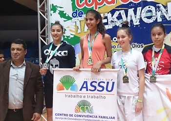 A taekwondista caçadorense Isadora Lopes (moleton preto) esteve entre os dias 7 e 9 de novembro na disputa da Copa do Brasil de Taekwondo, em Natal-RN, onde conquistou a medalha de prata mesmo competindo em categoria acima de seu peso como forma de preparação para os Jogos Abertos de Santa Catarina (Jasc), onde estará pela Fundação Municipal de Esportes de Caçador defendendo o município, entre os dias 17 e 19 deste mês, em Itajaí.