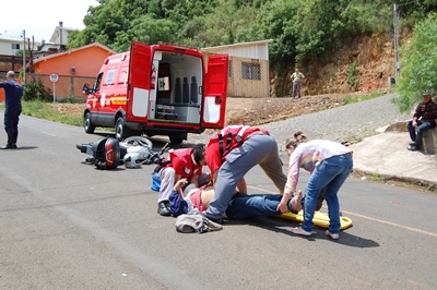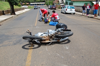 Com o impacto, o condutor da moto acabou caindo na via e sofrendo alguns ferimentos pelo corpo. Os Bombeiros Voluntários prestaram os primeiros atendimentos no local e depois conduziram a vítima ao Pronto Socorro do Hospital Maicé. O motorista do veículo não se feriu.