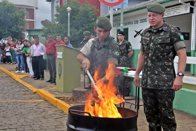 O sub-tenente do Exército Brasileiro e comandante do Tiro de Guerra, Ivano José Hoegen, em seu discurso disse que a bandeira do Brasil sempre será o simbolo máximo da pátria. “Não é um simples pedaço de pano. É a história de um povo, de uma nação inteira, suas lutas, glórias, costumes, seu passado, presente e futuro”, ressaltou.