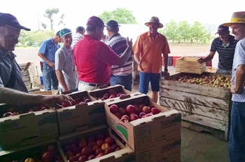 Acompanhados do engenheiro agrônomo da Epagri de Fraiburgo, Marcus Pritsch, foram visitados pomares dos produtores Jonny Hepp, Geraldo Gaio e Família Donatti, além do seu packing-house.