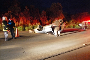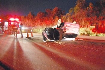 Uma saída de pista seguida de capotamento registrada na noite deste sábado, 28 de dezembro deixou quatro pessoas feridas. O acidente aconteceu na Rodovia Oswaldo Olsen, na saída para Calmon.