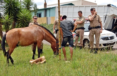De acordo com informações, por volta das 13hrs, a PM recebeu a denúncia de que um elemento estava no Bairro Berger, tentando vender a qualquer custo um cavalo. Mesmo sem informar a procedência, o elemento insistia que as pessoas comprassem o animal.