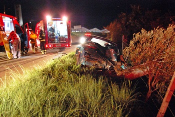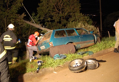 Um grave acidente de trânsito na madrugada desta segunda-feira, 9 de março, deixou três homens feridos. Todos estavam no interior de o GM Marajó com placas de Caçador que bateu forte contra um poste na Rodovia Oswaldo Olsen, próximo a Lamipack, na saída para Calmon.