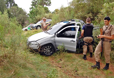 Depois de efetuar diversas manobras perigosas pelo Bairro Berger e descer toda a Avenida Salgado Filho pela contramão, o veículo suspeito chegou ao centro da cidade, indo em direção a Vila Santa Catarina. No final da Rua Amazonas o fugitivo acessou uma rua sem saída no Loteamento Montavani, onde adentrou á uma plantação de soja e desceu um penhasco de mais de 200 metros sem sequer tombar o veículo.