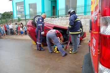 Populares que estava pela via acionaram o Corpo de Bombeiros Voluntários para socorrerem os ocupantes do veículo. Estavam no carro Lucas Alves de Souza, 18 anos, e uma menor de 16 anos. Os dois tiveram apenas ferimentos leves.