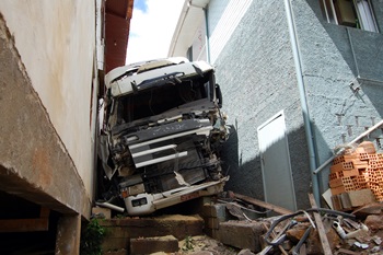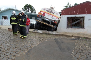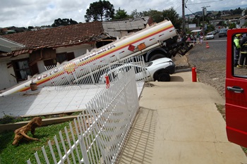 Uma carreta colidiu em duas residências na manhã desta segunda-feira, 23 de março, na Rua Alfredo Cachoeira no Bairro Sorgatto em Caçador. O veículo estava estacionado e provavelmente teve problemas no sistema de freios, já que estava estacionado e desandou sozinho antes de atingir os imóveis.