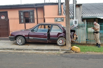 Um veículo GM Monza com placas de Caçador disparou e bateu num poste na manhã desta quarta-feira, 15 de abril, na Rua Joaquim Gonçalves Cordeiro, no Bairro Bello. O acidente feriu uma criança de 7 anos que estava acompanhando seu pai no interior do carro.