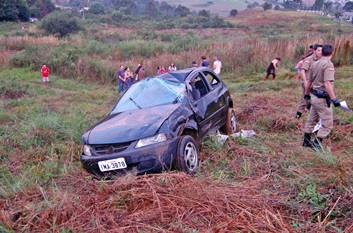 Nesta quarta-feira, dia 15, por volta das 18hrs, um GM Celta ocupado por duas pessoas seguia em direção a área urbana quando a sua condutora perdeu o controle da direção e acabou saindo da pista, invadindo um terreno particular e indo parar há quase cem metros da via. O carro capotou várias vezes e as duas vítimas precisaram ser levadas ao hospital.