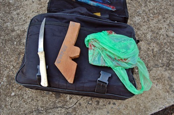 Quando seguia pelas proximidades do Sine, policiais de outra viatura que chegavam em apoio rederam o homem. Neste momento ele sacou de uma faca e partiu para cima dos mesmos entrando em luta corporal e vindo a ferir um deles no braço.