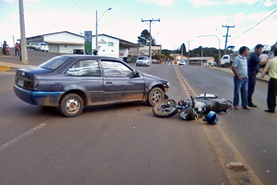 Um motociclista ficou ferido no início da tarde desta segunda-feira, 27 de abril, ao se envolver num acidente de trânsito em frente ao Posto Verenka na Rodovia Honorino Moro. Além da motocicleta Dafra RTR-150 com placa de Palmas/PR, a colisão envolveu um VW Logus de Caçador.