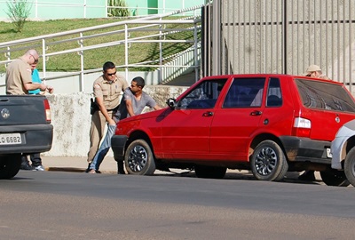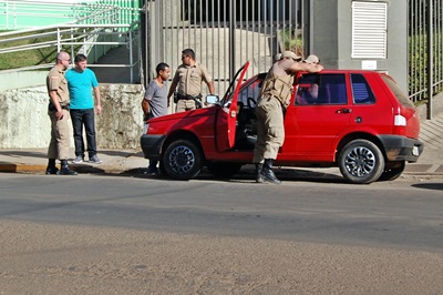Constatando que realmente se tratava do carro suspeito, as policiais solicitaram apoio das guarnições de radiopatrulha, as quais conseguiram abordar o veículo em frente á Câmara de Vereadores.