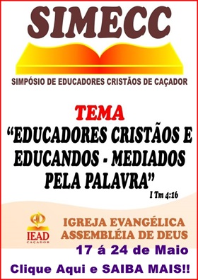 A Igreja Evangélica Assembleia de Deus promove em Caçador dos dias 17 a 24 de maio o 9º Simpósio de Educadores Cristãos de Caçador (Simecc) e a 3ª Escola Bíblica de Obreiros e Vocacionados da 12ª Região.