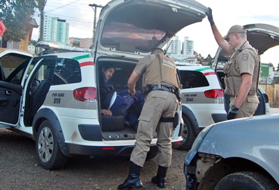 De acordo com informações, um Renault Clio com placas de Caçador, seguia pela José Gioppo em direção ao Centro quando uma motocicleta que trafegava no sentido contrário, ocupada por dois homens realizou uma manobra brusca para convergir em direção a Rua Moema.