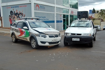 Uma viatura da Polícia Militar de Caçador foi danificada num acidente de trânsito na tarde desta quarta-feira, 20 de maio, na esquina da Avenida Sete de Setembro com a Rua Victor Batista Adami, no Centro de Caçador. Além da viatura com prefixo 5114 da PM, se envolveu na colisão uma Fiat Strada conduzida por Herrman Miguel Eichele, de 76 anos.