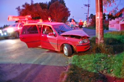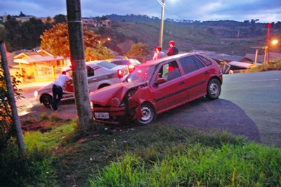 Um veículo colidiu num poste no início da manhã deste sábado, 23 de maio, próximo ao reservatório da Casan, na Rua José Gioppo. Uma pessoa ficou ferida e precisou ser encaminhada ao Hospital Maicé.