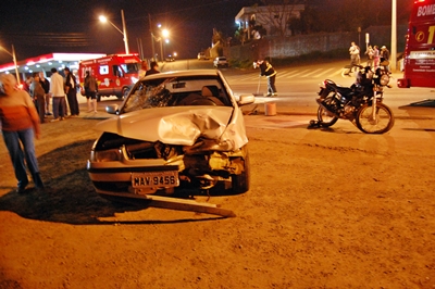 Um acidente de trânsito na Avenida Honorino Moro, em volvendo um carro e uma motocicleta, deixou uma pessoa gravemente ferida. A colisão ocorreu por volta das 18hrs, na Avenida Honorino Moro, próximo ao Posto Verenka.