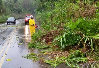 A SC-135 entre Capinzal/Lacerdópolis também ficou em meia pista enquanto os Bombeiros realizavam a remoção de árvores que caíram sobre a pista durante a chuva forte. A Secretaria de Obras do município de Ouro também trabalhou na retirada da terra no local.