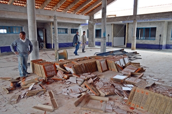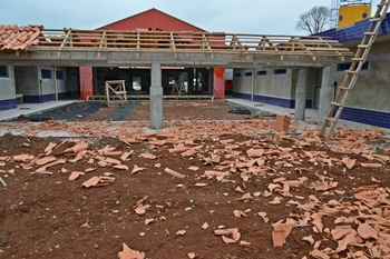 Os trabalhadores da obra para a nova creche do bairro Nossa Senhora Salete ao chegar nesta segunda-feira (6) para dar segmento aos serviços, se depararam com uma triste cena. Centenas de telhas, azulejos, muretas, solários e portas dos forros destruídas ou danificadas pela ação de vândalos ao que tudo indica durante este domingo.