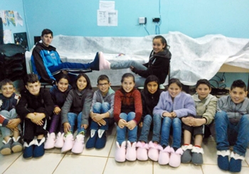 A Secretaria Municipal de Educação da Prefeitura de Caçador recebeu uma doação de pantufas da empresa caçadorense Daniela Tombini. A empresa doou 77 pares que foram repassadas aos alunos da Escola Rodolfo Nickel, no Assentamento Hermínio Gonçalves dos Santos. A partir de agora, quando os estudantes chegam à sala de aula, podem trocar o calçado que vieram de casa pela pantufa. O objetivo é manter os pés das crianças aquecidas durante o inverno.