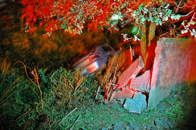 Um veículo colidiu num muro e ficou a beira de córrego na Rua José Cezário Guzzi, no Bairro Figueroa na madrugada deste domingo, 12 de julho. Cinco pessoas estavam no carro no momento do acidente, mas nenhuma se feriu gravemente.
