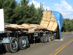 Segundo o motorista, que não quis se identificar, isso aconteceu porque a carga estava mal presa e ao passar pelo desnível da pista, o solavanco fez com que as chapas de compensado caíssem