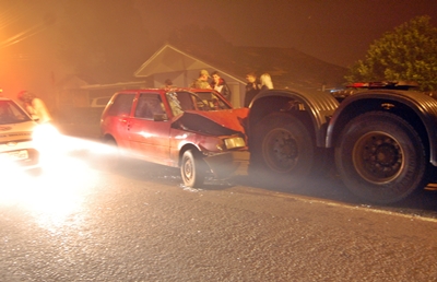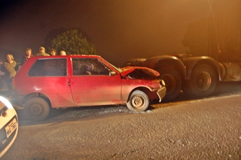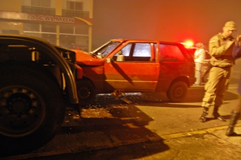 Um Fiat Uno com placas de Caçador, colidiu na traseira de um caminhão que estava estacionado na Rua Brasília, em frente ao Acessórios Ribeiro. O acidente aconteceu por volta das 5hrs da madrugada deste domingo, 26 de julho.