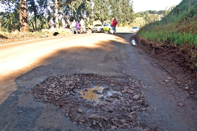 buraco kkkkk uma cratera, essa estrada ja e cheia de curvas estreita e com esses buracos acidentes sao inevitaveis