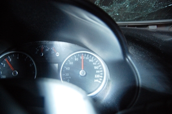No trecho onde o acidente aconteceu, a sinalização indica velocidade máxima permitida de 60km/h, dada a periculosidade da referida curva, porém no momento do acidente o velocímetro do carro travou em 100km/h, o que indica que ele possivelmente estivesse em alta velocidade.