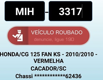 Se alguem tiver infrmações sobre o referido veículo, ligar para: (49) 8851-5781 (adriana) ou (49) 8826-3959 (Wilson), ou ainda ligar para o 190 da Polícia Militar.