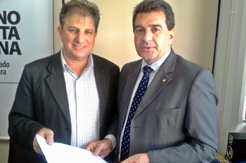 O deputado Valdir Cobalchini entregou ao secretário de Infraestrutura, João Carlos Ecker, documento solicitando celeridade nas obras do aeroporto Carlos Alberto da Costa Neves. Atualmente estão em obras o terminal de passageiros e as instalações de rádio comunicadores para que a operação por instrumentos seja retomada.