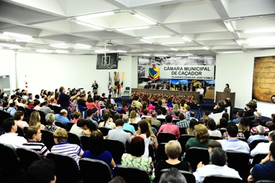 A sessão solene, tradicionalmente realizada pela Casa Legislativa, contou com a presença de Mário Cachinski, secretário de gabinete do prefeito de Caçador; Dirley Heller, gerente regional de Educação; Beto Cruz, coordenador regional do IPREV em Caçador, e os vereadores Alencar Mendes, Adilberto de Oliveira, Cleony Figur, Fernando Scolaro, Flávio Henrique Dos Santos, Glaci Pereira, Jorge Savi, Moacir D´Agostini, Neri Vezaro, Valmor de Paula e Wilson Binotto. Além da professora Jussara Durek, intérprete da APAS, e o secretário de Educação, Paulo Gonçalvez, participaram da cerimônia.