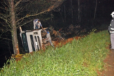 Como utilizava o cinto de segurança, o motorista nada sofreu. Ele conseguiu sair do interior da cabine, antes mesmo da chegada da unidade de resgate do Corpo de Bombeiros Voluntários.
