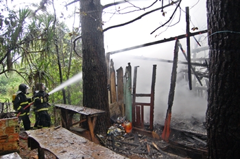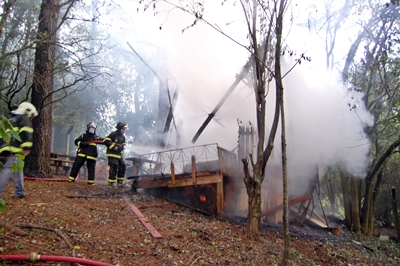 Uma pequena casa utilizada como estúdio de ensaios de uma banda de rock foi destruída por um incêndio na manhã desta quinta-feira, 22 de outubro, na Rua Luiz Totatto, no Bairro Gioppo em Caçador. Chovia forte na hora do sinistro e suspeita-se que um raio tenha provocado às chamas.