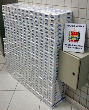 Uma guarnição da radiopatrulha abordou na Rodoviária Municipal de Caçador após denúncia ao Centro de Operações da Polícia Militar (COPOM) um cidadão transportando 228 maços de cigarro da marca Clássic e 393 maços de cigarros da marca Blitz, sendo de origem estrangeira sem documentação que comprovasse seu ingresso lícito em território nacional. O material estava escondido no banheiro da rodoviária.