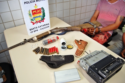 Deslocando-se até o endereço informado pelo menor, a PM logrou êxito ao encontrar uma espingarda calibre 36, cuja numeração estava ilegível. Também no local foram localizadas 12 munições intactas, um aparelho de som automotivo, um HD externo e outros objetos de procedência duvidosa, os quais foram recolhidos e entregues juntamente com os envolvidos na delegacia.