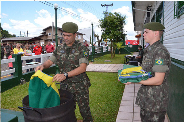 Neste dia 19 de novembro é comemorado em território nacional o Dia da Bandeira e o Tiro de Guerra 05-006 de Caçador prestou sua homenagem realizando também a entrega de kits cívicos a instituições de ensino do município e incineração das bandeiras nacionais que já tiveram seu tempo de uso (inservíveis). O ato foi acompanhando por autoridades, professores e familiares de atiradores.
