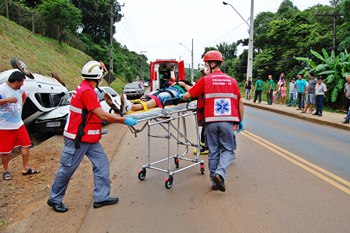 Um veículo capotou e duas pessoas ficaram feridas na manhã deste sábado, 12 de dezembro, na Rodovia Comendador Primo Tedesco, no Bairro Bom Sucesso em Caçador. Pai e filho estavam num veículo Corsa Sedan, com placas de Caçador, que capotou e atingiu um VW Gol que estava estacionado na lateral da via.