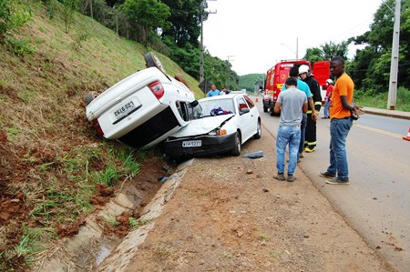 De acordo com informações, o Corsa seguia no sentido elevado/presídio quando o condutor perdeu da direção, derrapou na pista e bateu num barranco, vindo a tombar sobre o Gol.