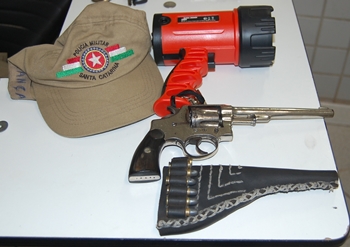 Na noite desta quinta-feira, 13, a Polícia Militar de Caçador tirou mais uma arma de circulação. O revolver calibre 32 com cinco munições intactas e uma deflagrada, pertencia a Odair João Correia, 43 anos e, foi apreendida após denúncia da própria esposa do individuo.