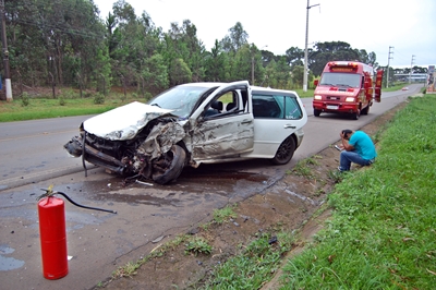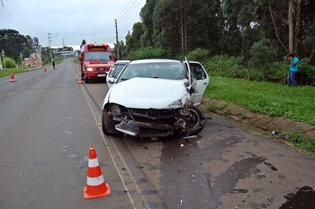 De acordo com informações, uma carreta com placas de Medianeira/PR seguia em sentido a Lebon Régis quando um veículo VW Golf de Xanxerê saiu do pátio do posto Brasília atravessou a via e foi direto na carreta.