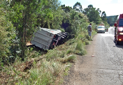 O corpo de Bombeiros Voluntários esteve no local com uma ambulância e uma unidade de resgate, mas apesar do susto o motorista sofreu apenas escoriações leves e não quis ser encaminhado ao hospital. A Polícia Rodoviária assumiu a ocorrência.