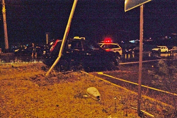Um veículo derrubou um poste e deixou outro quase caindo nesta madrugada, do trevo do Sesi, na Rodovia Honorino Moro em Caçador. O acidente ocorreu por volta da 0h40min.
