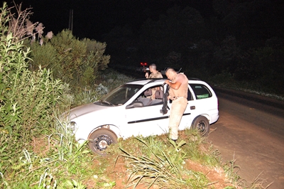 Já pressionado por duas viaturas da PM, o motorista do Corsa acabou perdendo o controle da direção ao contornar a perigosa curva conhecida como Garganta do Diabo na rodovia SC-135 e, depois de invadir a vegetação na lateral da via os ocupantes acabaram sendo detidos.