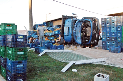 Um caminhão com placas de Caçador, que transportava uma carga de tomates tombou na Rodovia Honorino Moro, no início da noite desta terça-feira, 19 de janeiro. Apesar do susto o motorista não se feriu.