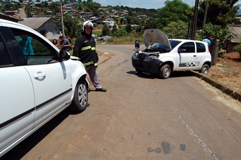 Uma mulher ficou ferida num acidente de trânsito na tarde deste sábado, 23 de janeiro, na Rua Telmo Tadeu Siqueira, no Bairro Martello. A colisão envolveu um Fiat Uno e um GM Ágile, ambos de Caçador.