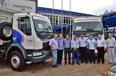 O município de Caçador acaba de adquirir dois novos caminhões basculantes e uma ambulância, através de recursos próprios, emendas parlamentares empenhadas pelo deputado federal Celso Maldaner e de convênio com a 10ª Agência de Desenvolvimento Regional de Caçador (ADR). Na quarta-feira, dia 27, o deputado Celso Maldaner esteve em Caçador para realizar a entrega simbólica das chaves.