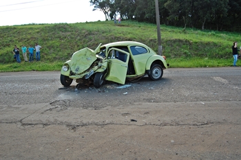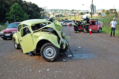A colisão envolveu um VW Fusca e um Fiat Uno, ambos de Caçador