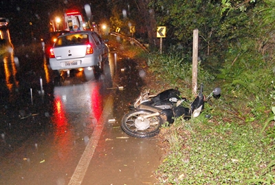 De acordo com informações, a motocicleta Honda Biz placa MIG- 1256, seguia em direção a Caçador quando o condutor de 44 anos, perdeu o controle da direção e bateu contra guardrail na lateral da via.